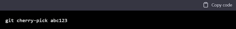 If you need to apply a specific commit from one branch to another, you can use the git cherry-pick command. This command allows you to pick a commit and apply it to the current branch. For example, to cherry-pick a commit with the hash abc123, run the following command: