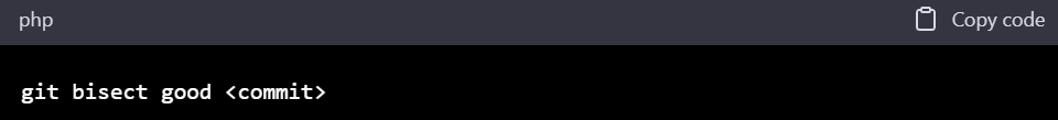 Git will then perform a binary search and check out a new commit for you to test. After you’ve tested the commit, mark it as either good or bad with the git bisect good or git bisect bad command. Git will continue to perform a binary search until it finds the commit that introduced the bug.