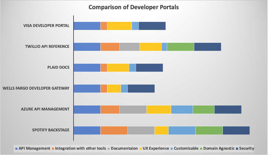 Azure API management and Spotify Backstage, similar to Twilio, provide a complete package when it comes to developer portals. However, Backstage stands out among them because of its customizable approach, which can be tailored to any organization and solve nearly all use cases. Unlike Twilio, Backstage does not limit itself in terms of integration with other tools and leverages NPM packages for integration. While Azure is heavily geared towards Azure tools, which limits its usability compared to Backstage.