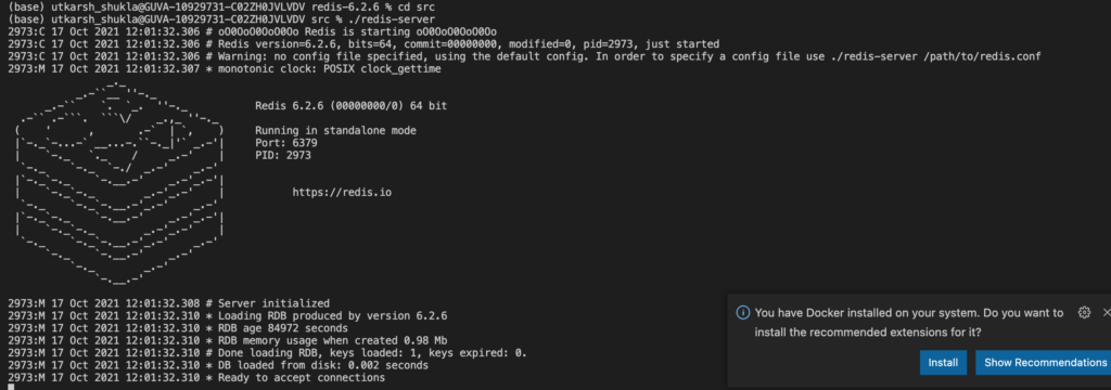 - Now we will go to the src folder and run ./redis-server it will start the Redis server locally.