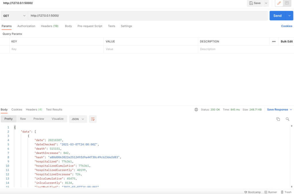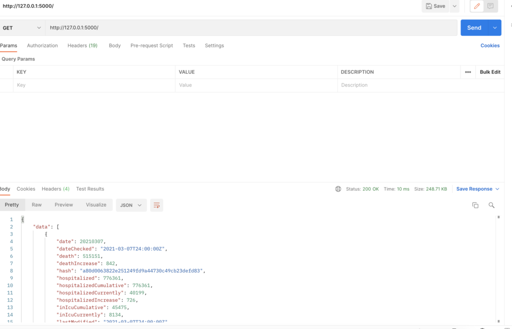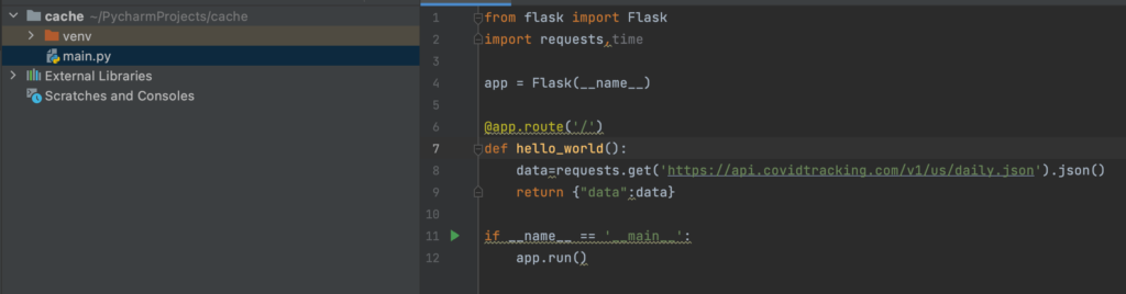 - Let’s create a small flask application, that hits an opensource API that fetches the covid data.