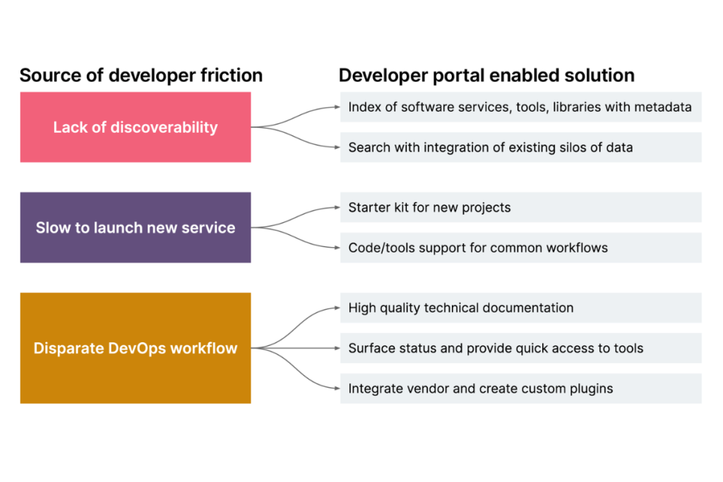 Backstage provides a unified developer portal that centralises all tools, services, and documentation in one place. This cohesive approach significantly reduces cognitive load on developers, making it easier to access the resources they need. For instance, a developer can quickly find relevant APIs, deployment pipelines, and service documentation without navigating through multiple platforms. This streamlined access enhances productivity and allows developers to focus on building rather than searching.