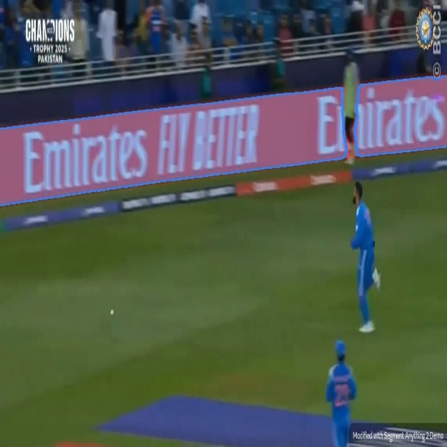 The following approach highlights a New Zealand fielder making an extraordinary attempt at the boundary using SAM-based segmentation: