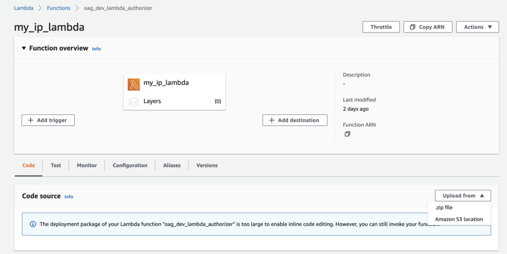 zip -g function.zip my_ip_lambda.pyUploading this bundle on AWS Lambda