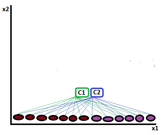 | x1 | x2 | Centroid 1 | Centroid 2 |