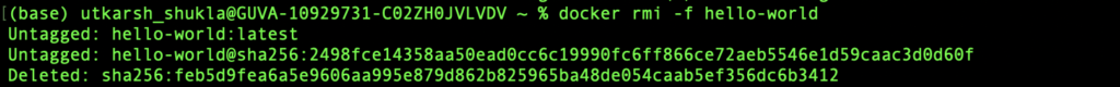 - Here we can see in the output that we have successfully deleted hello-world image.