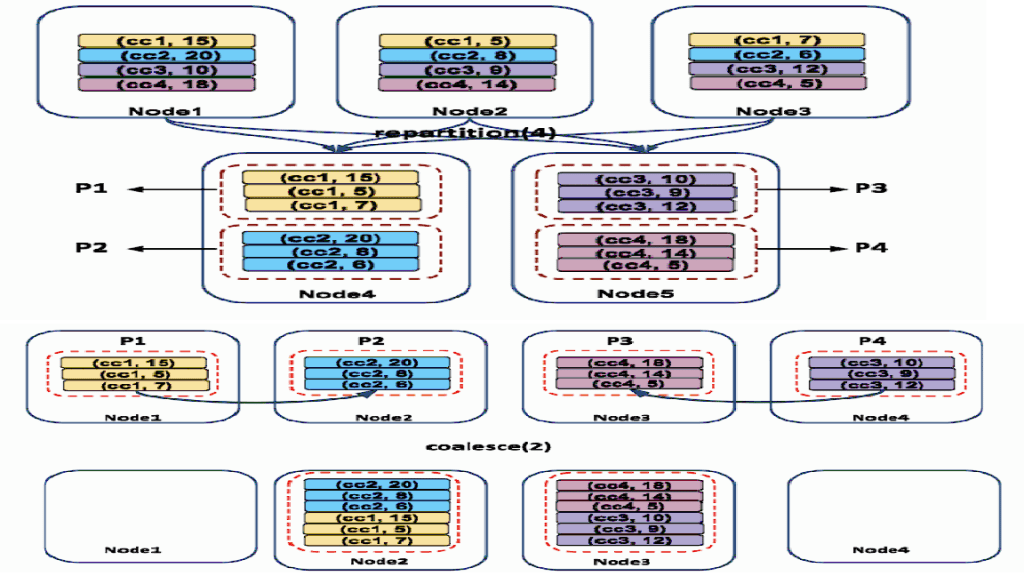 ⦁ Coalesce – The coalesce method reduces the number of partitions in Dataframe. It avoids full shuffle , instead of creating new partitions, it shuffles the data using the default Hash Partitioner, and adjusts into existing partitions, this means it can only decrease the number of partitions.