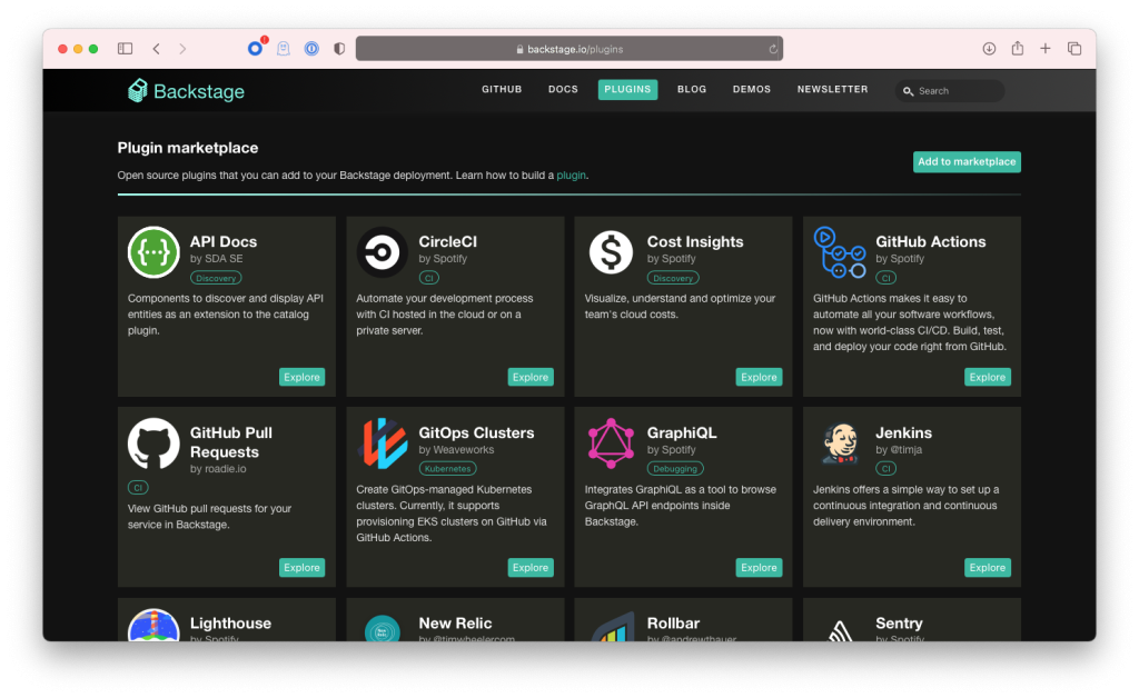 Backstage.io’s plugin ecosystem enables teams to extend the platform’s functionality to meet their specific needs. With a wide range of plugins available, teams can integrate their existing tools and services into the platform, creating a customized development environment. This flexibility allows teams to continue using their preferred tools while benefiting from the centralized nature of BS.
