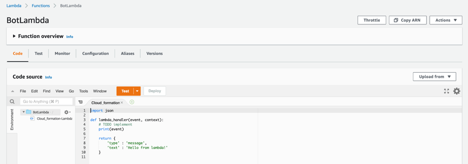 - The default lambda function code should look like this.