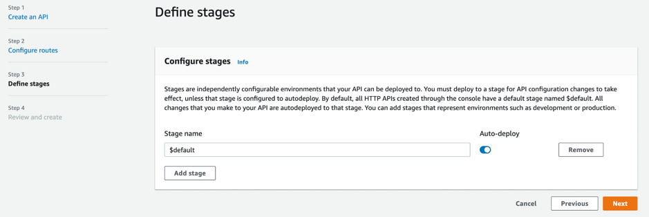 - Configure the stage as Auto-deploy and click on next.