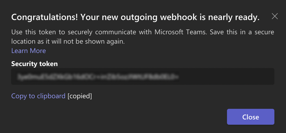 Now outgoing webhook added into the teams channel.