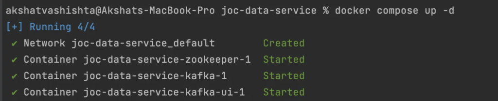 KAFKA_CLUSTERS_0_ZOOKEEPER: zookeeper:2181Start Kafka using docker compose
