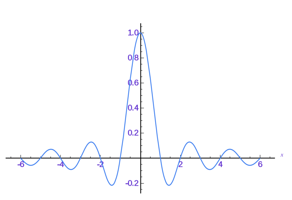 Aliasing Detection: The Sinc function’s zero crossings correspond to points of constructive or destructive interference. This property can be useful in applications involving aliasing detection and analysis, which is important in signal processing and image reconstruction tasks.