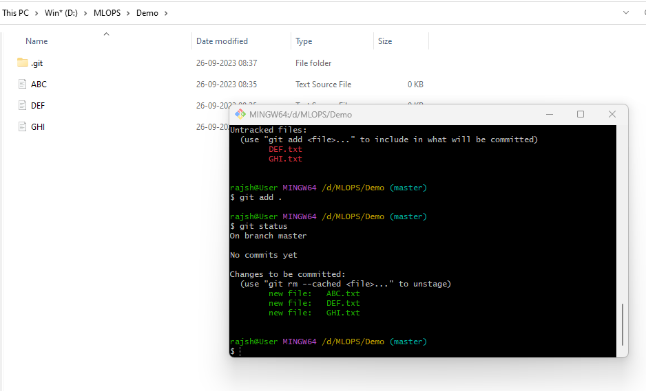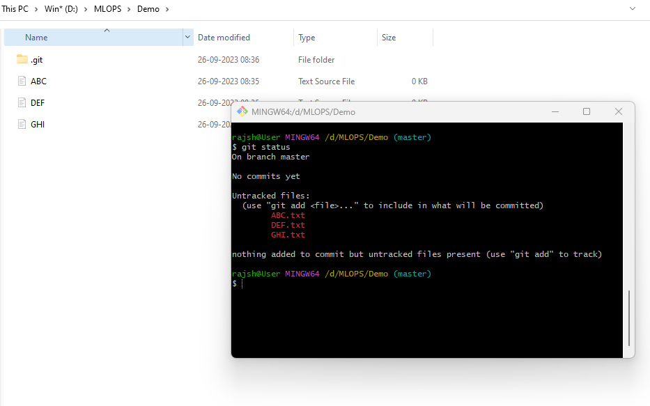 The git command is used to transfer the files from the project folder which is also known as a workspace to the repository (.git folder). The files in the workspace are also known as files are untracked files and our first job is to transfer the files from un-tracking to track using git command.