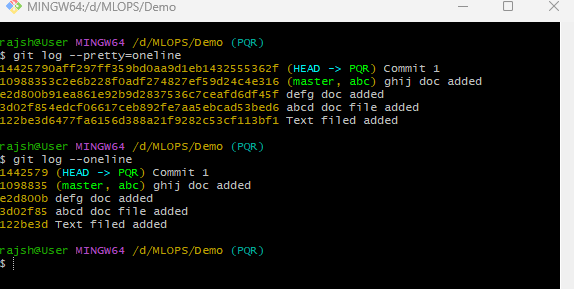 This command is used to display a simplified and compact view of the commit history in a git repository. It formats the commit information to show each commit as a single line, making it easier to quickly scan the history. The primary purpose of ‘git log –pretty=oneline’ is to provide a simplified and condensed view of the commit history. This is useful for quickly scanning commit messages and identifiers without the verbosity of a full commit log.