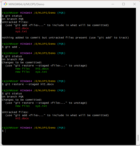 The ‘git restore –staged’ command is used to unstaged changes from the staging area for a specific file in your git repository. This is used to manage changes in your working directory. that means when you run git restore –staged , git moves the changes that were in the staging area for the specified file back into your working directory. ‘–staged’ is an option that specifies that you want to unstage changes from the staging area. In other words, it moves changes that were previously added to be committed back into the working directory.