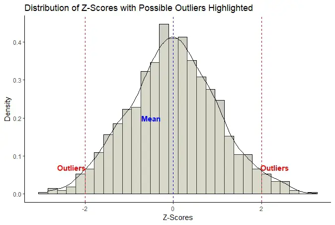 Any score with a Z-score greater than 2 (or another threshold you choose) is considered an outlier.