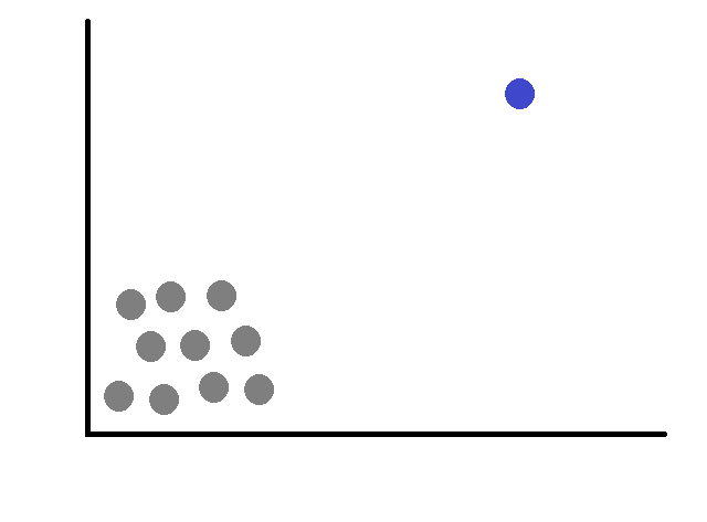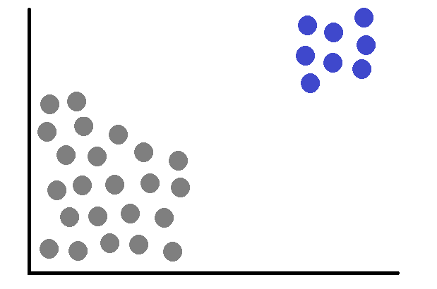 - If most points cluster closely together, but one or a few points are situated far away from the main cluster, those distant points might be outliers.