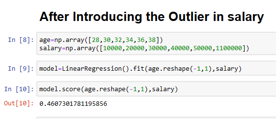 In the below example, we took one feature as age and target as salary. Here in the first example, we took all values closest to each other, which means here we are not using any outliers.