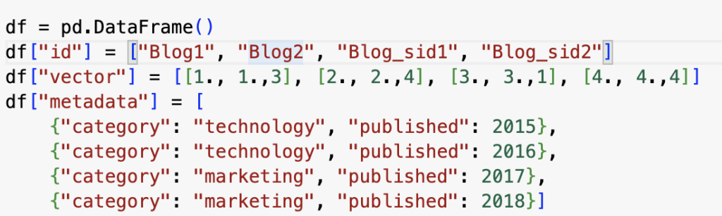 We have here vectorized versions of blogs with there categories and published date. We will be pushing this data in Pinecone. We can then perform query search operation using the metadata for filters.