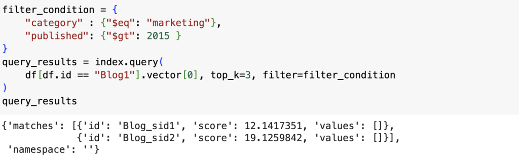 Here we have set the filter condition as category equal to marketing and published greater 2015 and in our results we have see the conditions are being met.This was a quick busy person’s guide to Metadata filtering in general though here I have used Pinecone for demo.