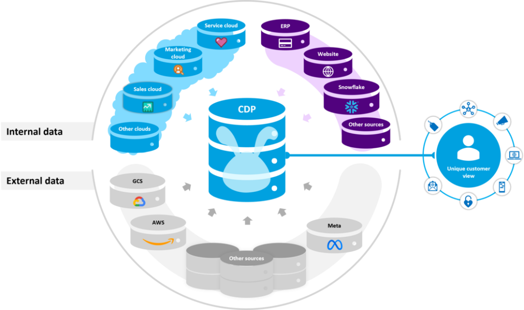 Goal usage cases: Data is gathered from all available data sources within your company. It can be applied to any kind of action, communication, or understanding in the areas of sales, customer support, marketing, commerce, MuleSoft, Tableau, and other areas.