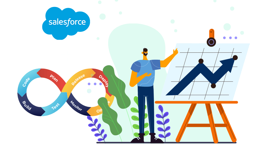 DevOps in Salesforce refers to the process of bringing together software development and IT operations teams to build, test, and deploy applications and services in Salesforce faster and more reliably. It constitutes a series of methodologies crafted to accelerate and enhance the efficiency of software development, testing, and release processes. Originating from the fusion of responsibilities between development (‘Dev’) and operations (‘Ops’) teams, DevOps aims to streamline collaboration and communication.