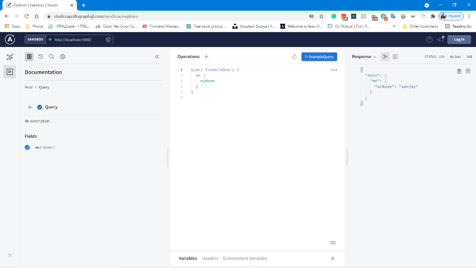 Now run the js file and you should see the apollo server on the browser and then we can perform the query request as a client to get a required data