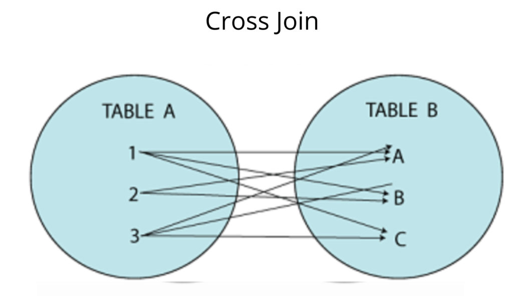 Cross Join operation returns the cartesian product of the two tables. It doesn’t let us specify the join clause, but we can use the where clause in it. It combines each row of one table to the other.