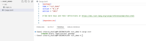 - [dependencies]: This section lists the package’s dependencies, along with their versions. Dependencies can be specified either by version number or by a range of compatible versions.