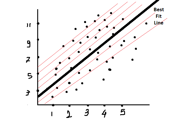 In the next below image, we can see that some points are away from the linear line. As we know that the best-fit line travels from such an area, the maximum number of data points should be covered. But it doesn’t mean that all data points will lie on a linear line. We didn’t come across such data; even if do, it will be pure linear data, and it is not difficult to work on such data; just apply the algorithm, take inputs for testing, and give the result. Since the data is pure linear here, the model will directly compare the range of the result and answer in that range. But actually, this is not going to happen; we didn’t get such data, and even the best data we found will not cross the linearity threshold by more than 80%.