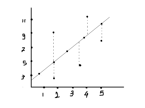 In the above figure, some data points are away from the linear line. These data points are trying to jump on a linear line by updating the values of coefficients. The difference between two points is nothing but the distance, and this distance is measured in the form of error or residual. This distance has never been in minus, but somewhere we say positive distance and negative distance.