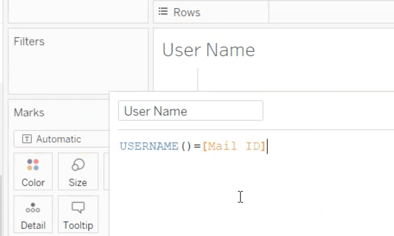 3. USERNAME: This function will return the username of the current user which will be the username in the Tableau Server or Tableau Online when the user is signed in. If not signed in, the username will be the local username for the Tableau Desktop user.